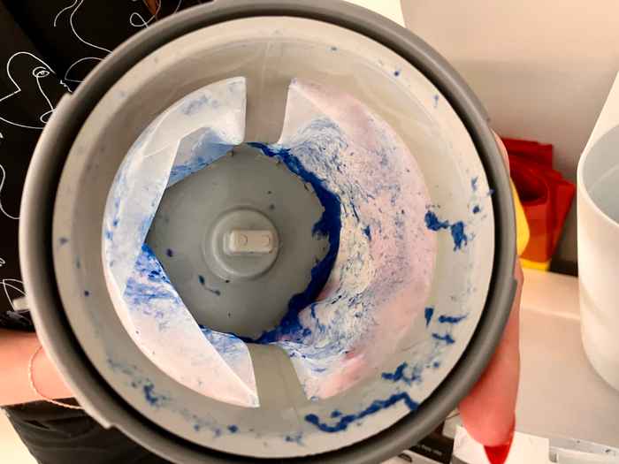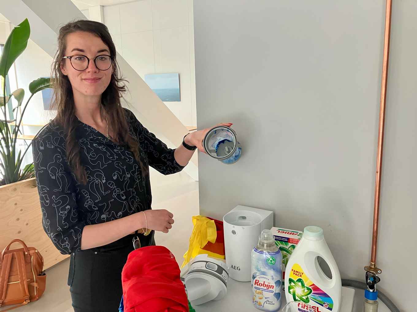 A special filter has been connected to the machine to collect the fibres released during the washing. Every cycle will start with a new filter. By the way, filters like these will be mandatory in France from the first of January 2025 for all newly produced washing machines. That makes France the first country in the world to take legislative steps in the fight against plastic microfiber pollution.